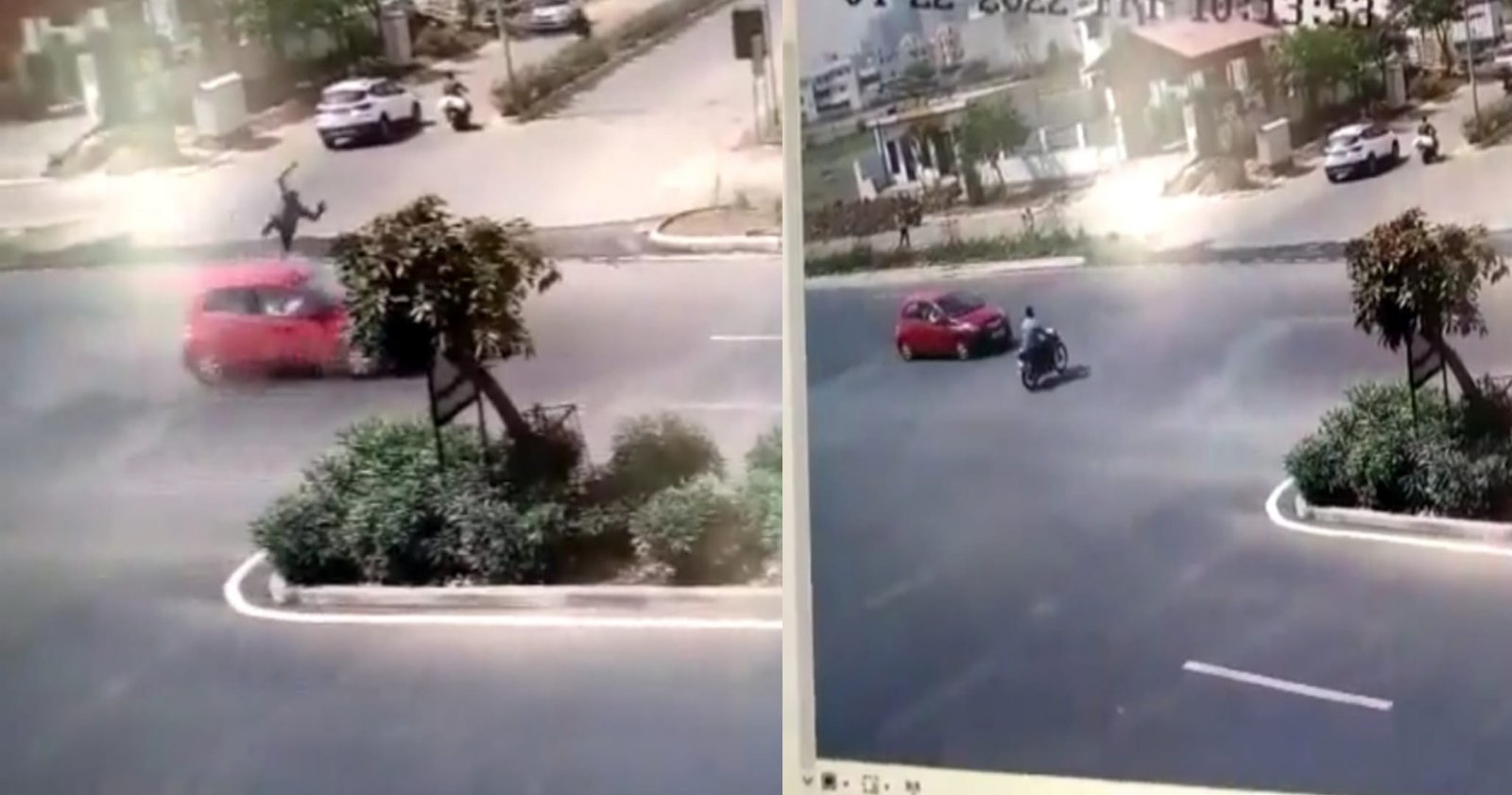 Image: A young man jumped 6 feet in the air due to a car collision in Ghaziabad (Source: Social Media)