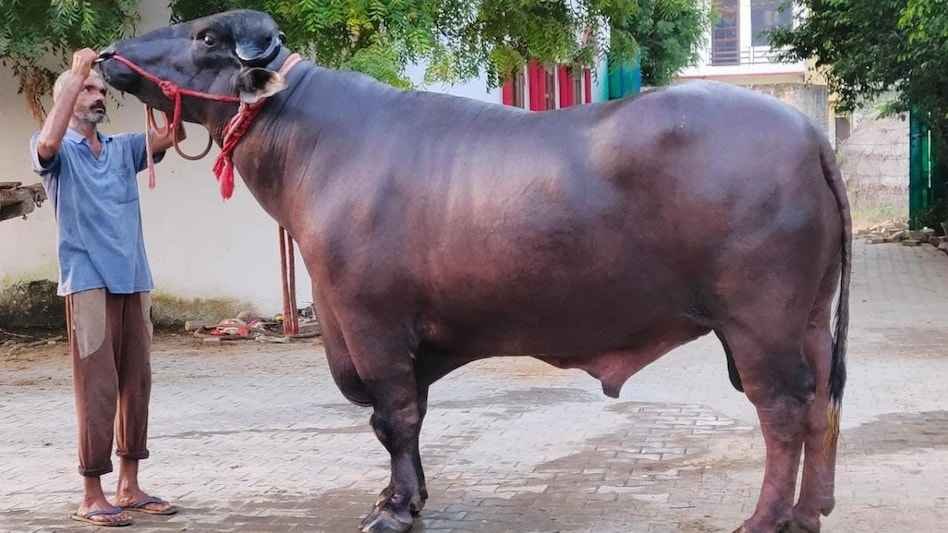 गोलू से लेकर भैंस तक का वजन 15 क्विंटल यानी 1500 किलो होता है और इसकी उम्र 4 साल 6 महीने होती है। नरेंद्र सिंह ने बताया कि गोलू रोजाना 30 किलो सूखा हरा चारा, 7 किलो गेहूं-चना और 50 ग्राम खनिज मिश्रण खाता है.